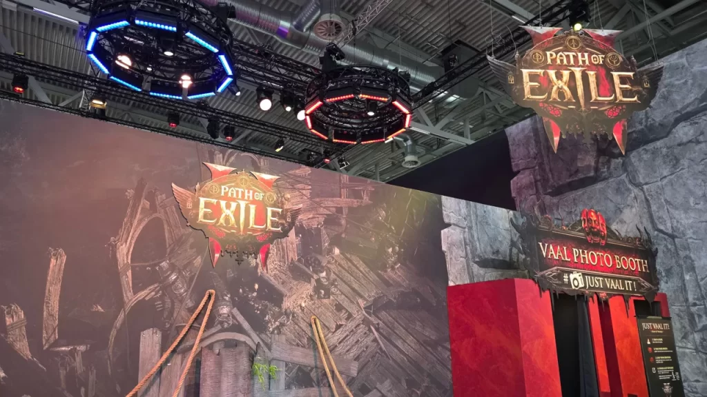 Uma das primeiras coisas que fizemos no Gamecom deste ano Ă© visitar o Caminho do exĂlio 2 Booth, e lá,