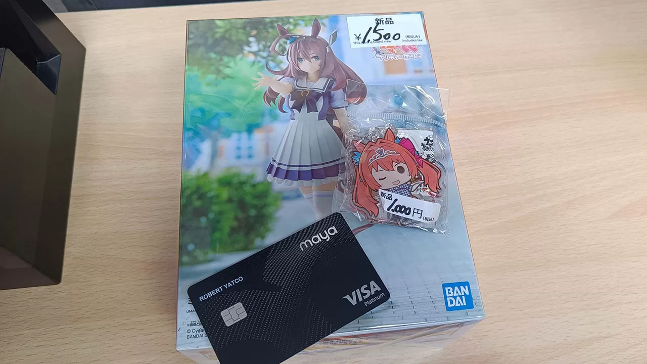 No dia seguinte, tive um pouco de tempo livre durante a manhã, então fui uma rápida visita a Akihabara porque … comecei a entrar no Uma Musume e tive que me marcar um bom mercadoria. Fico feliz em informar que consegui encontrar essa figura do Mihono Bourbon e um chaveiro de Daiwa Scarlet, pelo qual também não tive problemas com o pagamento com meu preto maia. Agora, eu quero observar algo. Você notará que tenho tirado fotos das minhas compras com o cartão na foto. Normalmente, isso é um pouco perigoso a se fazer, porque você não deseja exatamente acenar com seu cartão de crédito em que as pessoas podem ver o número do seu cartão de crédito e potencialmente fazer com que alguém anote seus detalhes para usar em algumas transações não autorizadas.